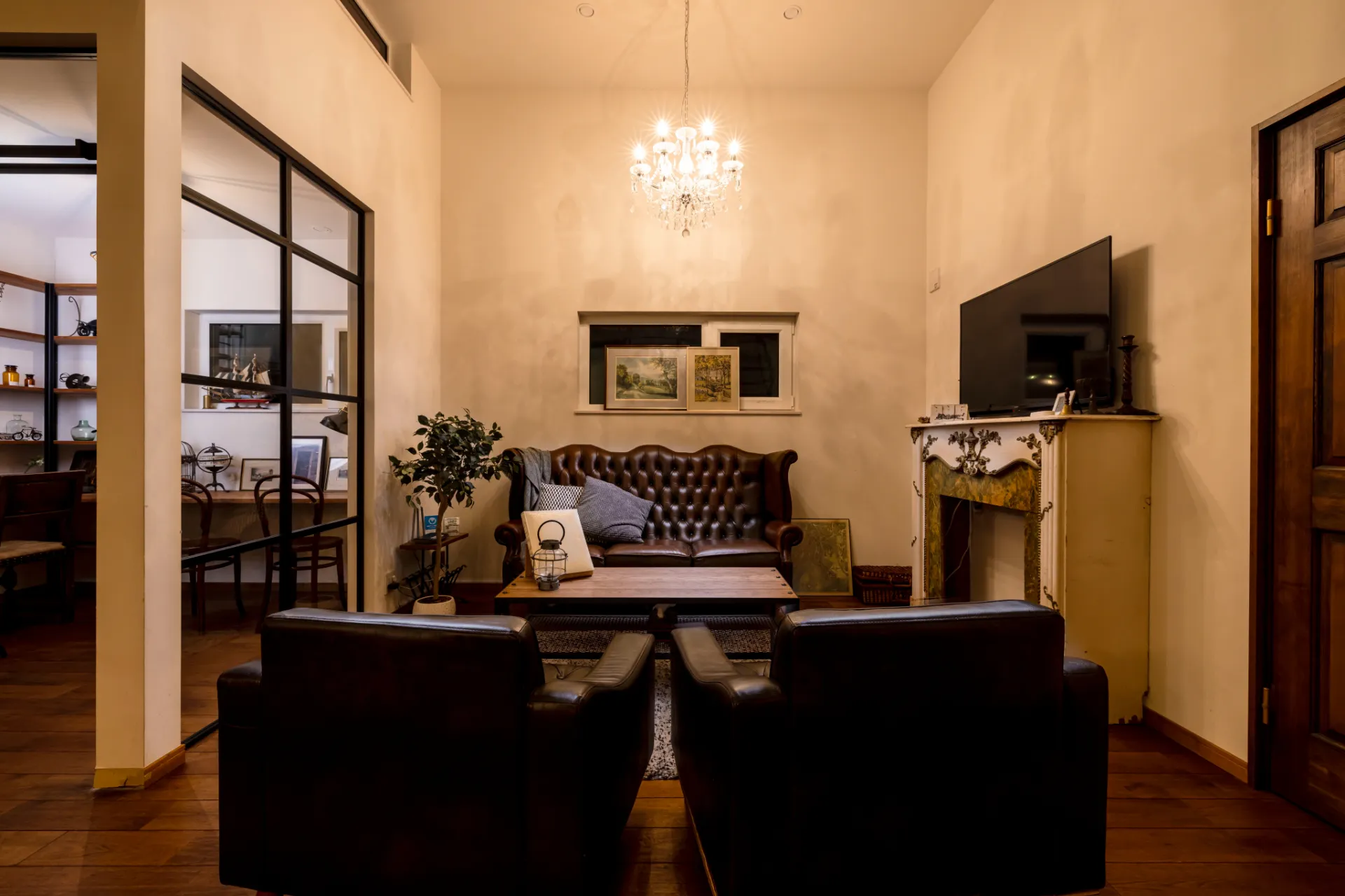 チェスターフィールドのソファやシャンデリア、大人数で囲めるオープンキッチンなど細部までこだわった空間をどうぞお楽しみください